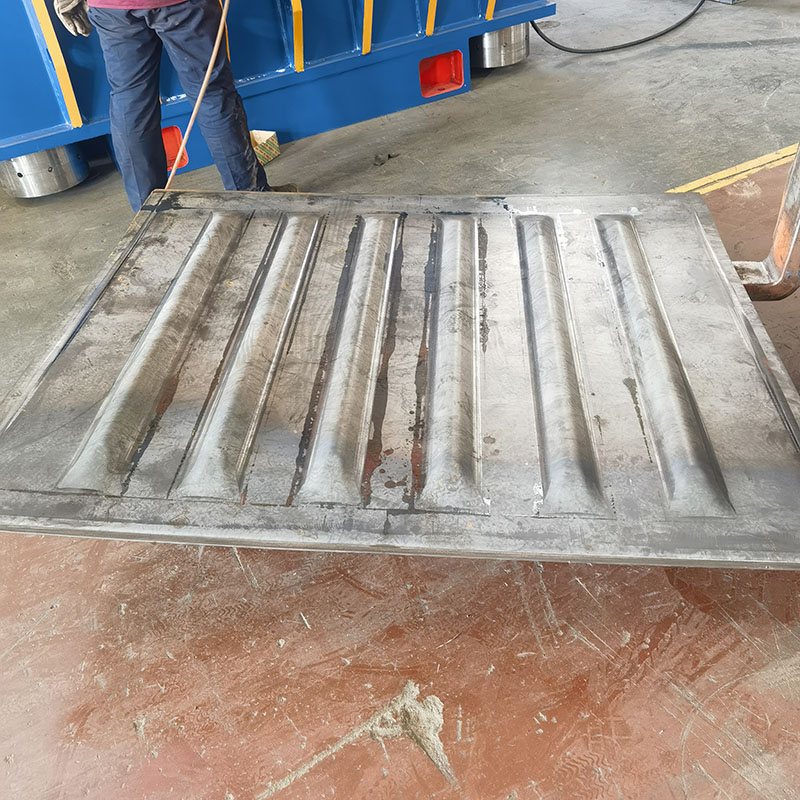 Purpose: This machine is a 5000 ton hydraulic press used for pressing and forming train doors, freight train box tops, containers, car and truck carriages, and door panels