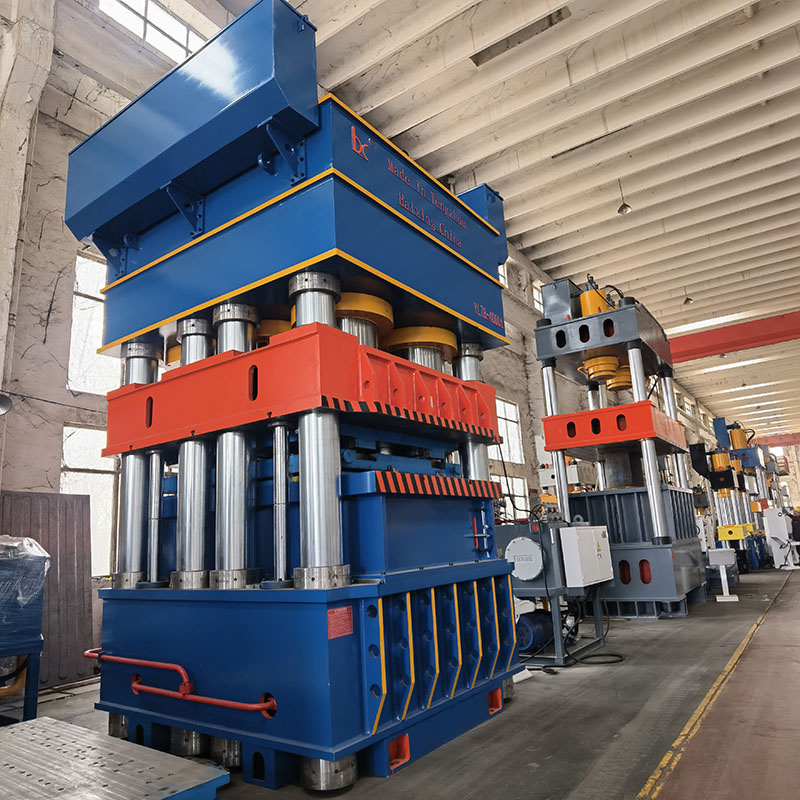 Purpose: This machine is a 4000 ton hydraulic press used for pressing and forming train doors, freight train box tops, containers, car and truck carriages, and door panels