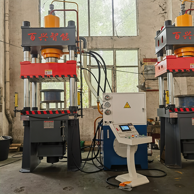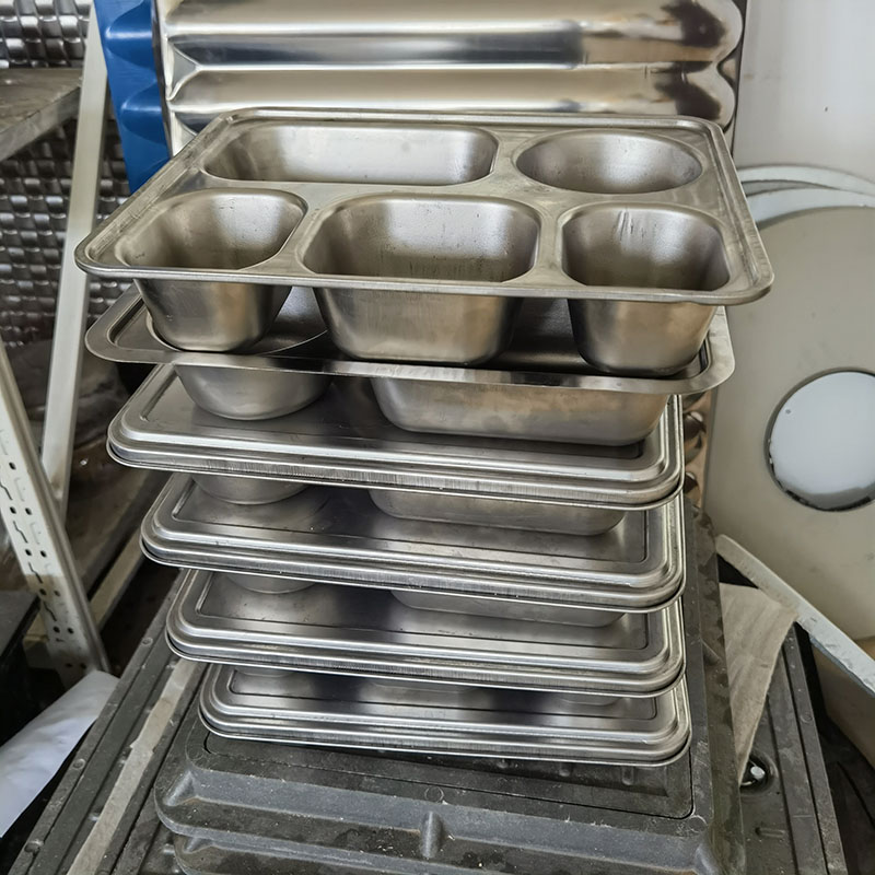 Description: This machine is a 150 ton hydraulic press used for producing stainless steel plates and lunch boxes.
