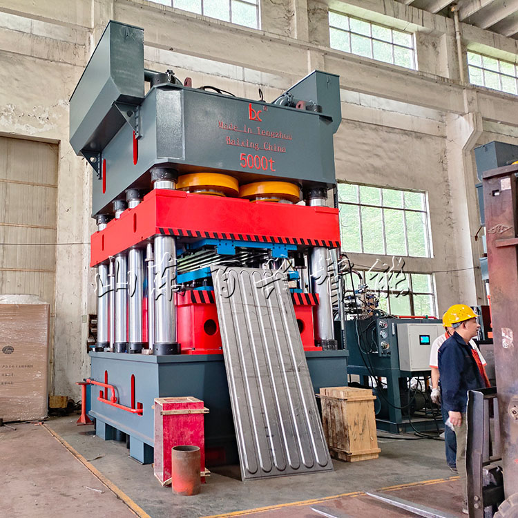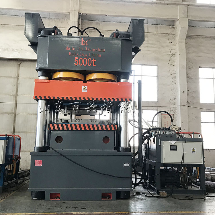 Tengzhou Baixing mainly produces hydraulic machines, four column hydraulic machines, door panel embossing machines, head stretching hydraulic machines, small cart body forming hydraulic machines, quartz water tank hydraulic machines, resin well cover hydraulic machines, stainless steel water tank hydraulic machines, stainless steel water tank hydraulic machines, BMC drainage ditch hydraulic machines and other hydraulic equipment.